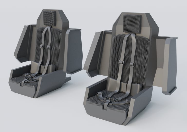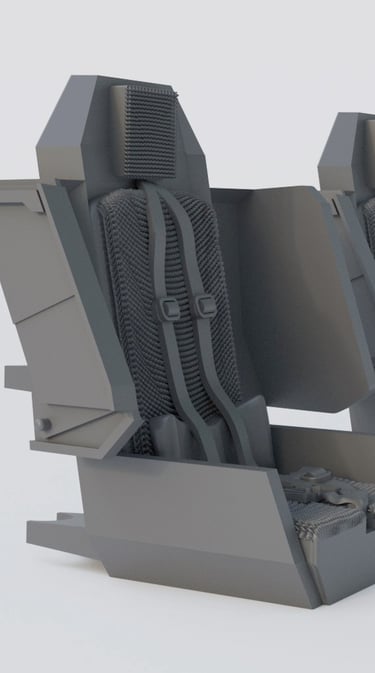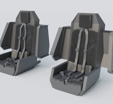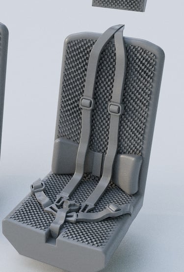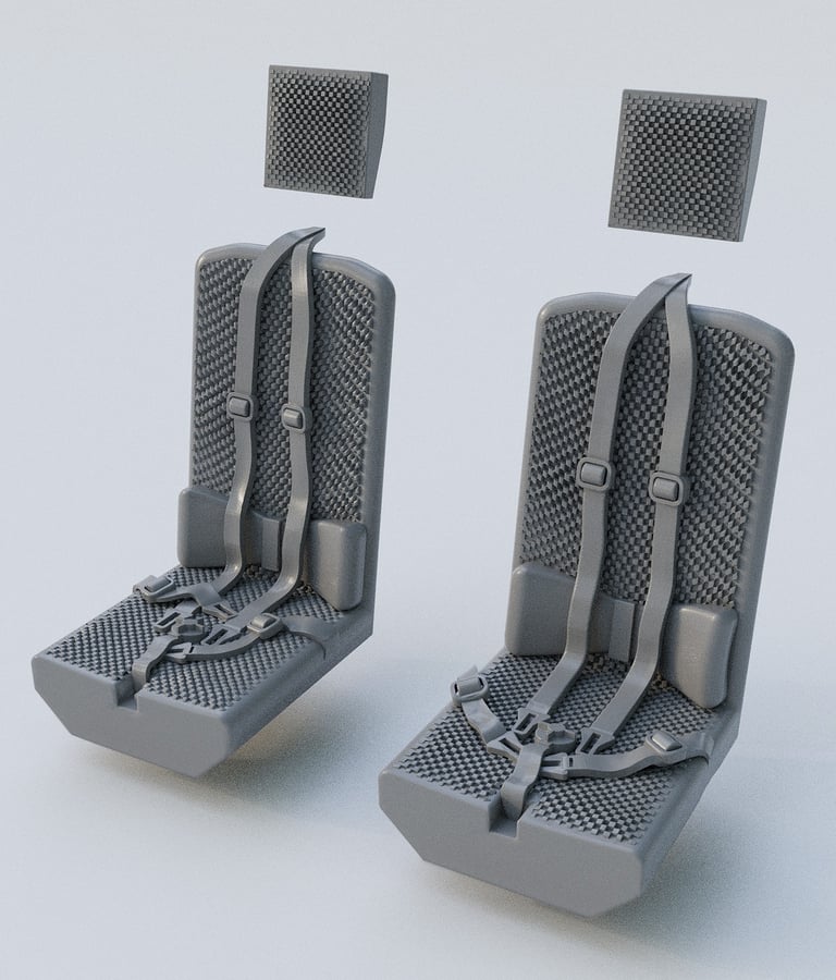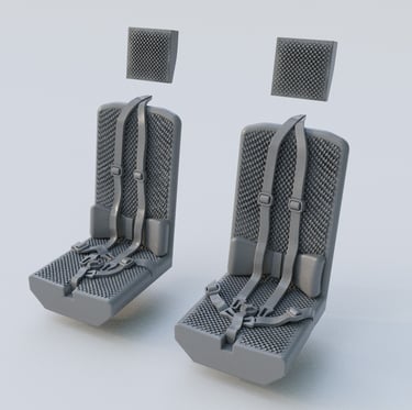This kit contains two high detailed 3D printed seats. Include 4 printed parts and assembly instructions