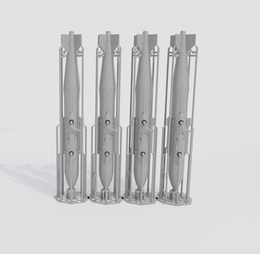 This kit contains two 3D printed fuel tanks with their pylons & two pylons for the outer wing stations